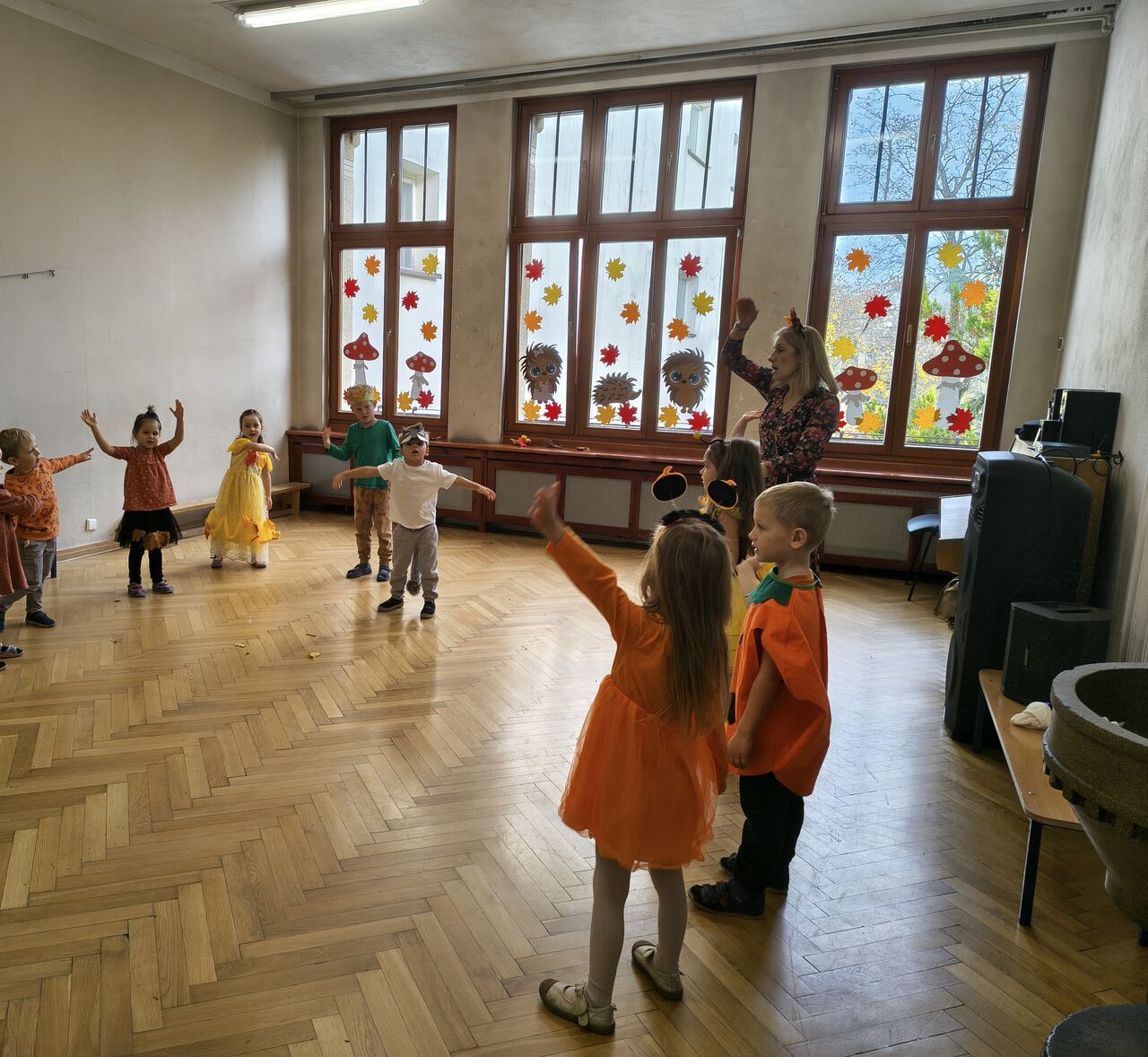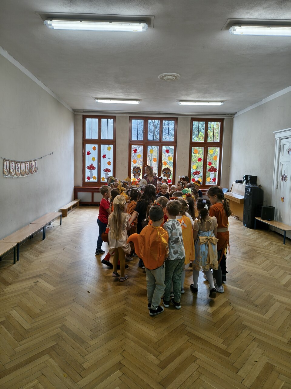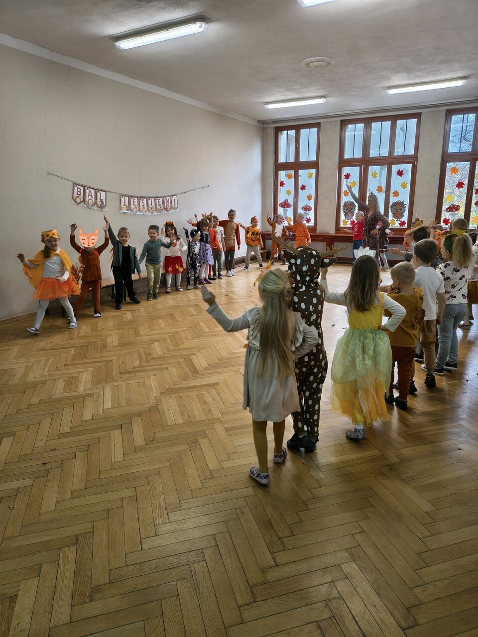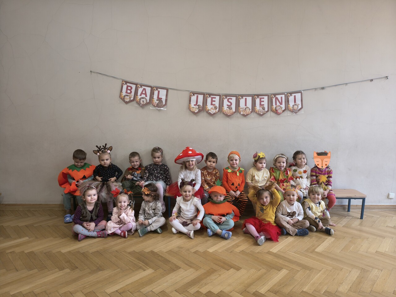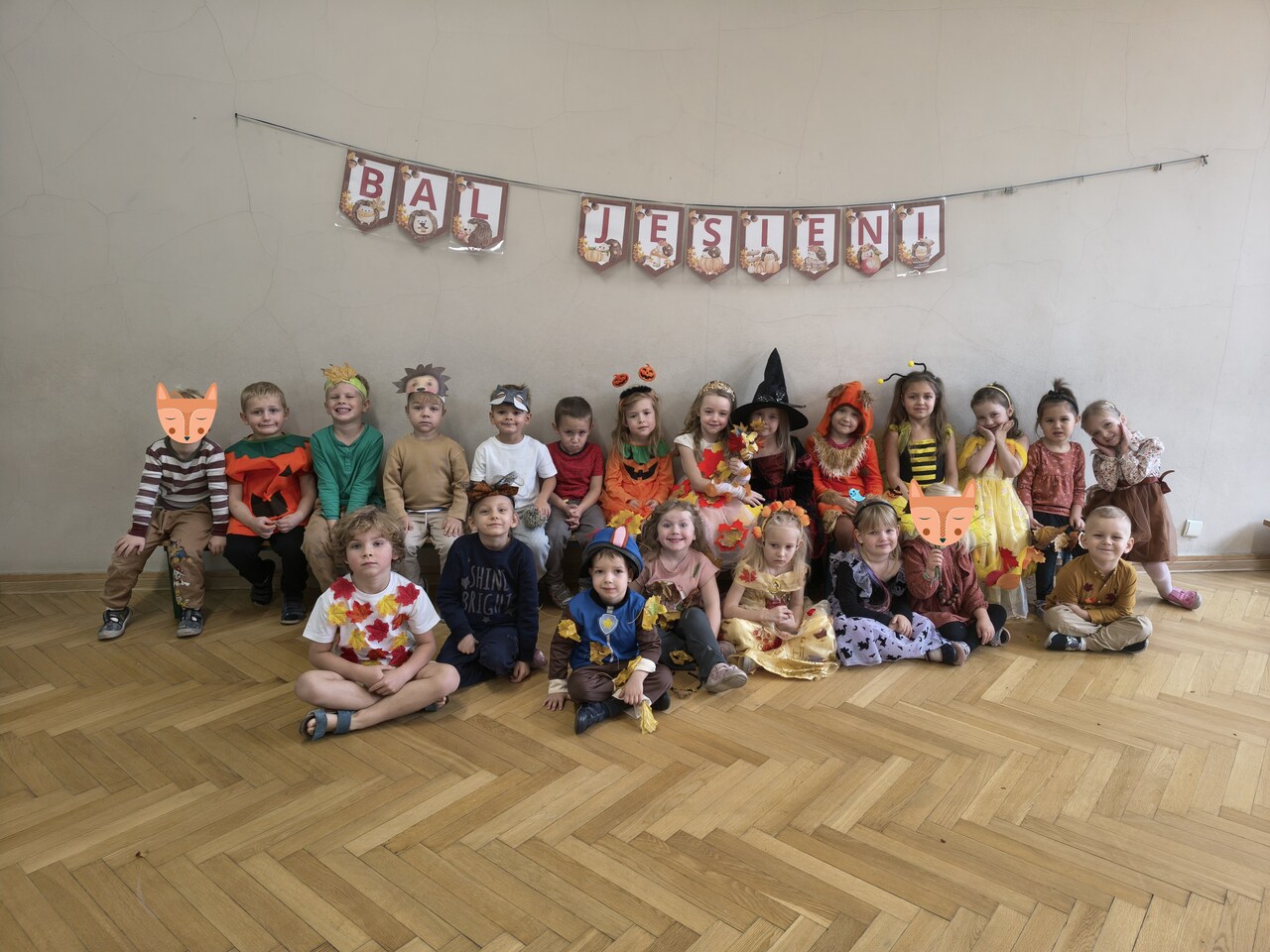 27 października odbył się w naszym przedszkolu Bal Jesieni. Jesienne stroje przygotowane przez rodziców były wyjątkowe i pełne kreatywności. Na balu królowała zabawa przy muzyce i jesiennych piosenkach; nie zabrakło zagadek o tematyce jesiennej. Były barwne korowody, wężyki, koła i kółeczka. Uśmiechnięte buzie to najlepszy dowód na to , że bal był udany.