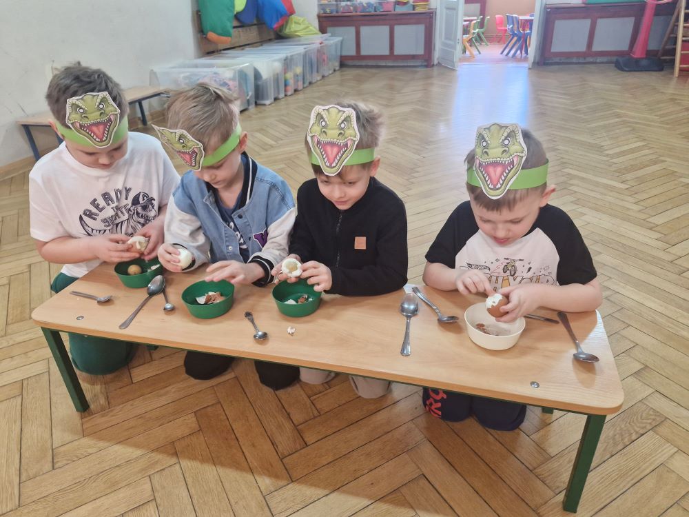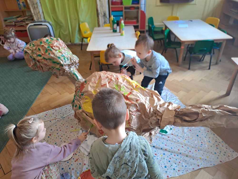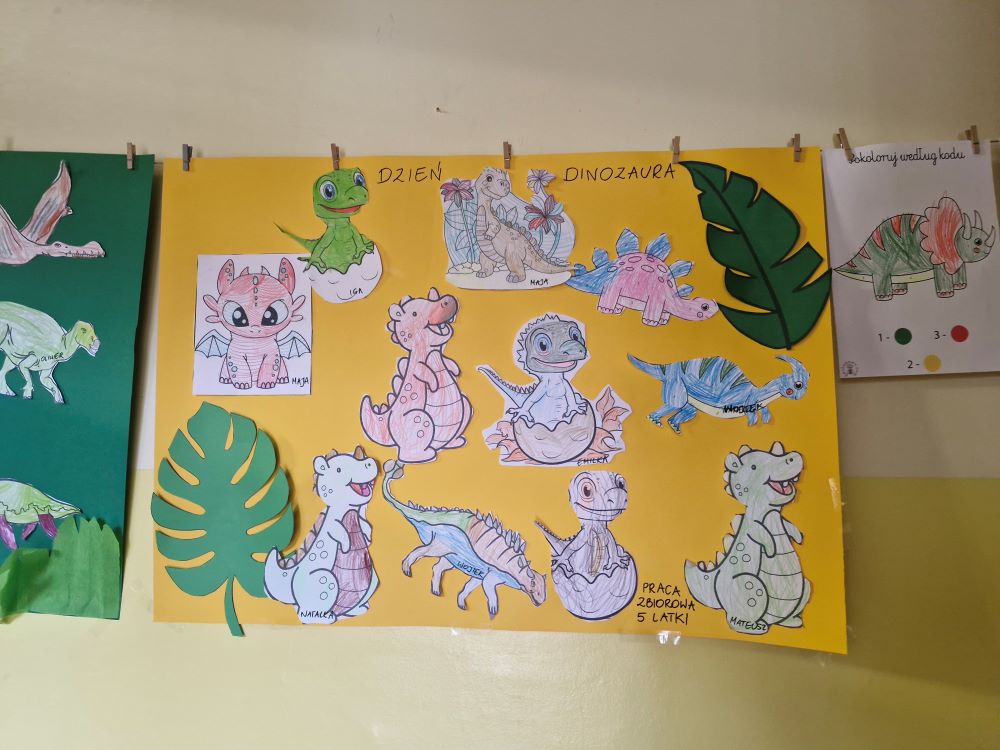 W czwartek 26 lutego przedszkolaki odbyły niezwykłą podróż do świata prehistorycznych gadów. Tego dnia dzieci nie tylko poznały historię dinozaurów, ale również brały udział w ciekawych zajęciach. Nasze przedszkole zamieniło się w Park Jurajski. Dzieci m.in rozwiązywały zagadki, poszukiwały w przedszkolu jaj dinozaurów i uczestniczyły w zabawach muzyczno-ruchowych. Nie zabrakło pięknych prac plastycznych, które upiększyły przedszkolne korytarze, sale i szatnię.