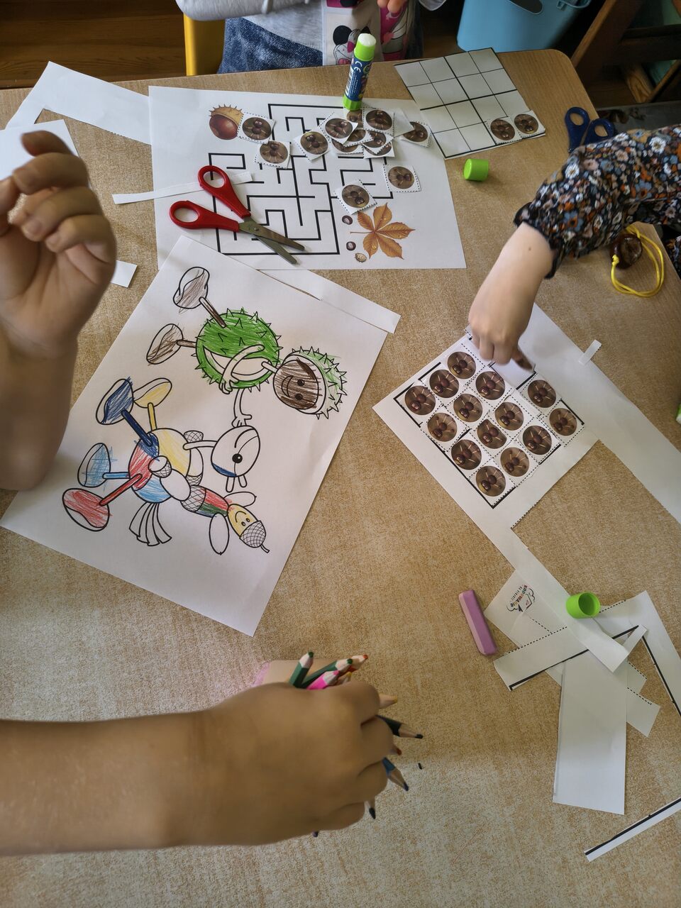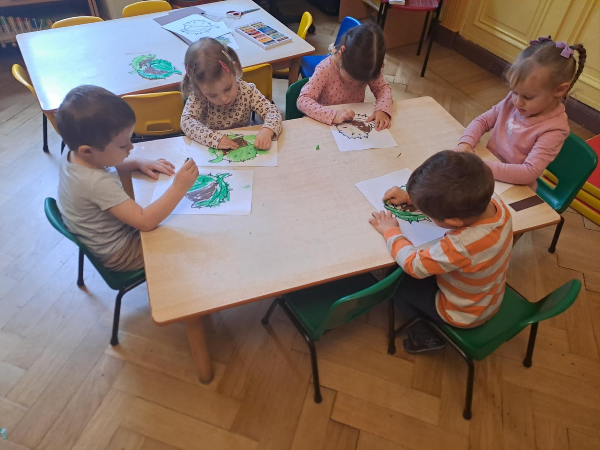 7 października w naszym przedszkolu obchodziliśmy Dzień Kasztana. W każdej grupie, tego dnia, odbywały się zajęcia o kasztanach i z kasztanami. Między innymi: zabawy ruchowe, rytmiczne, matematyczne, piosenki o kasztanach czy kasztanowe kolorowanki i karty pracy.