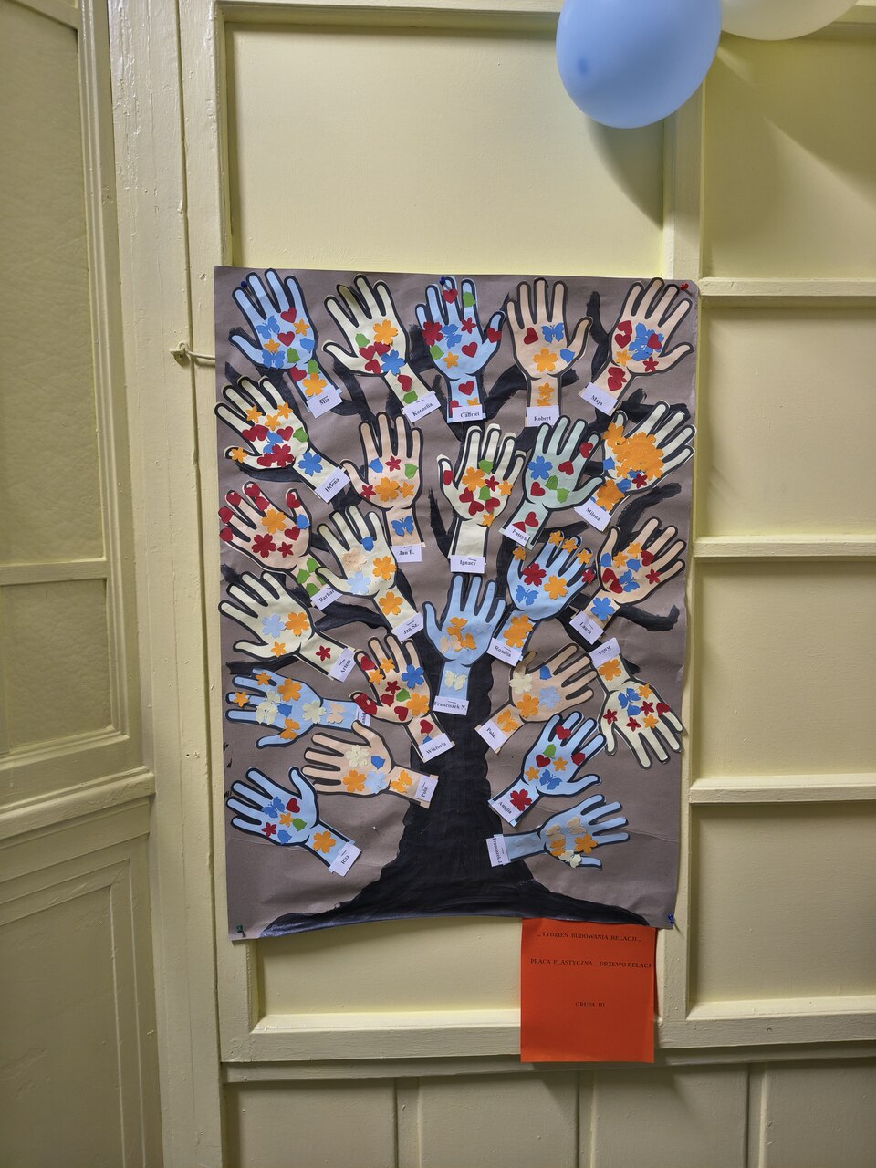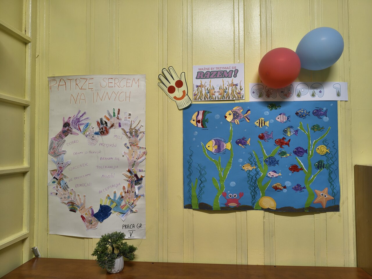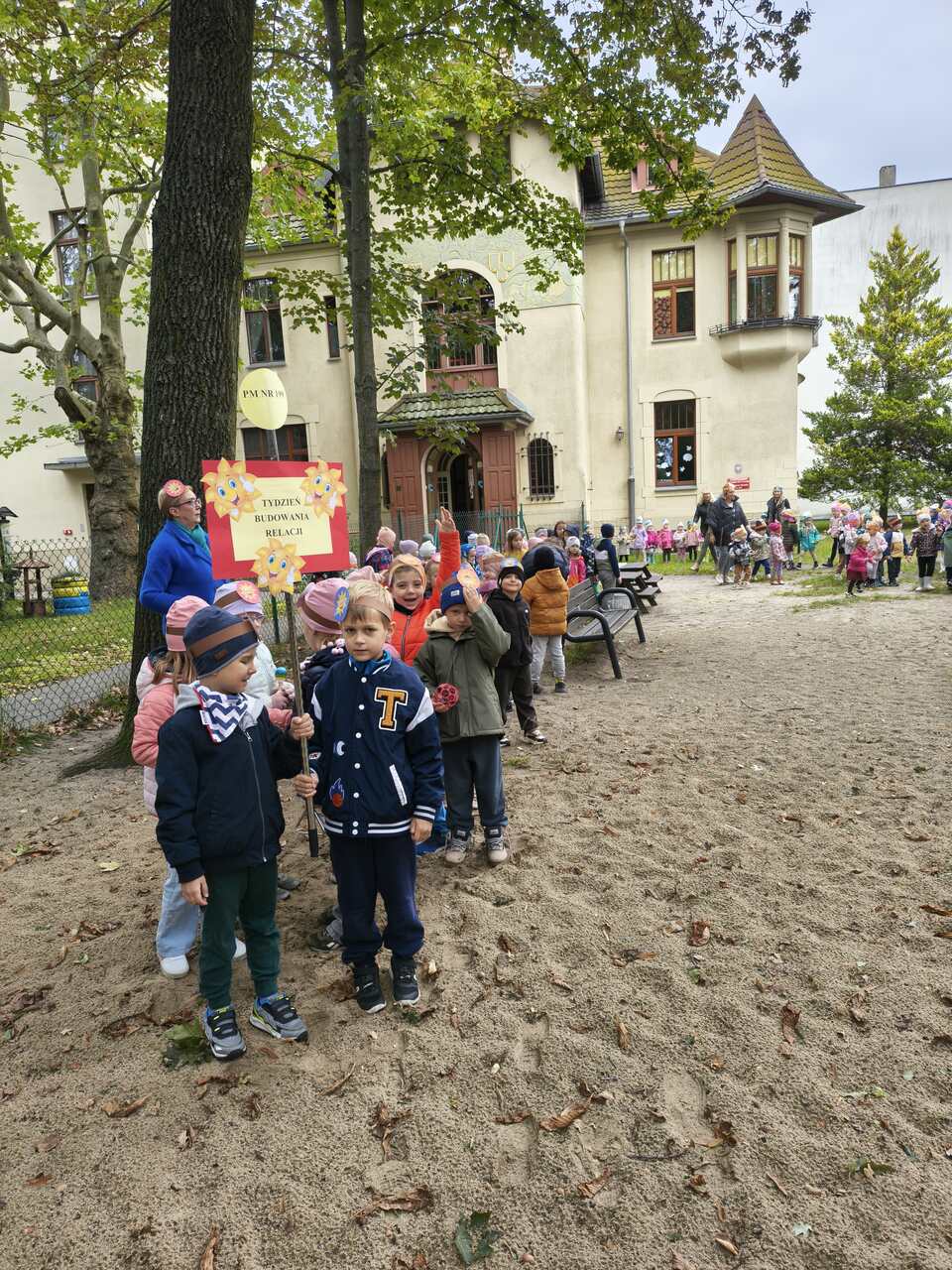 W dniach 29.09 - 3.10. br. w naszym przedszkolu obchodziliśmy Tydzień Budowania Relacji. Wyjaśniliśmy sobie znaczenie słowa relacja, omówiliśmy jakie warunki powinna spełniać dobrze zbudowana relacja. Przez cały tydzień grupy integrowały się z innymi grupami i z pracownikami przedszkola. Wspólne zabawy w salach owocowały w dużo śmiechu. W środę odbył się przedszkolny Marsz Przyjaźni. Z transparentem i instrumentami przeszliśmy po naszym ogrodzie, by celebrować przyjaźń. Przez ten czas w przedszkolu działała Poczta Dobrych Myśli, każdy mógł wrzucić dla kogoś list z jakimś dobrym słowem; przesyłki wywołały u adresatów uśmiech a czasem również wzruszenie. Na koniec tygodnia, w przedszkolnej szatni, powstała galeria, w której powieszone zostały plakaty przyjaźni, wykonane przez poszczególne grupy. Treści poruszane w tym tygodniu na długo zostaną w naszej pamięci i będą wcielane w życie przez całą przedszkolną społeczność.