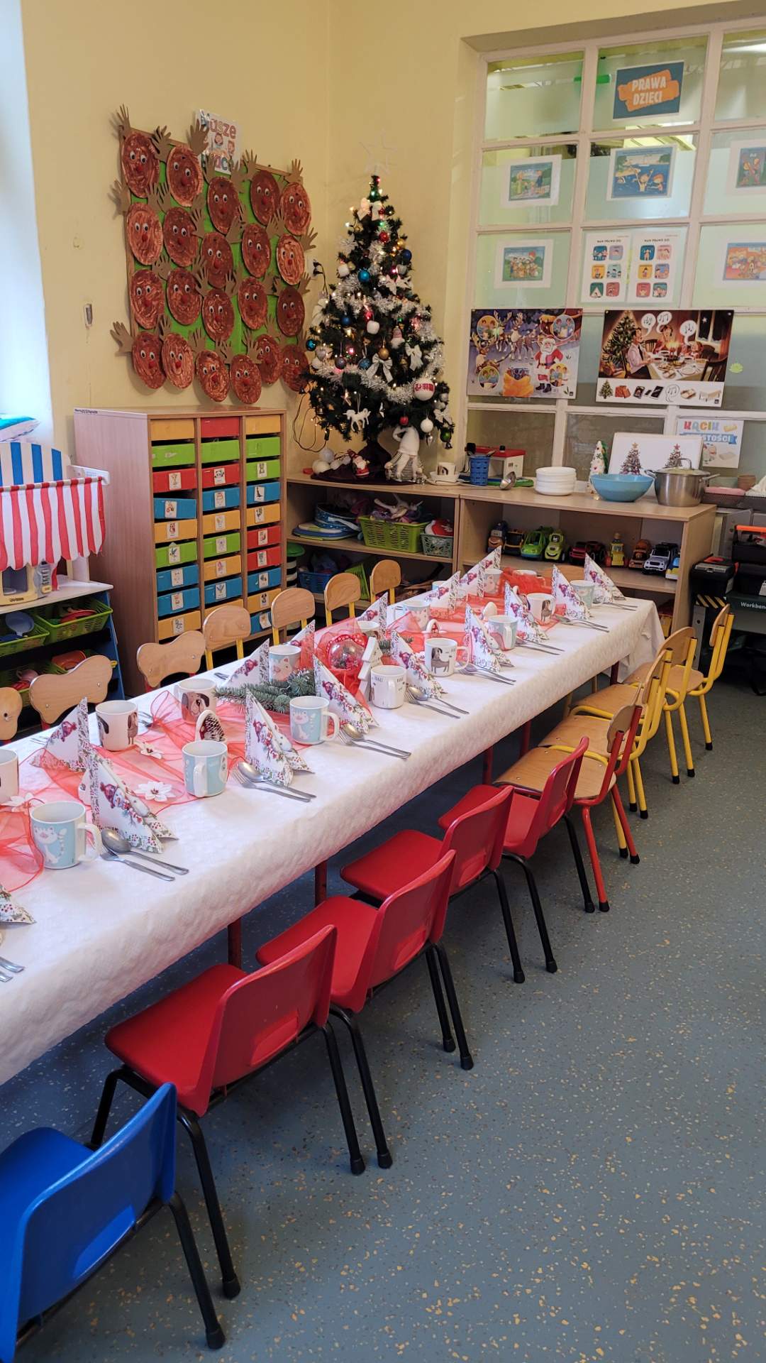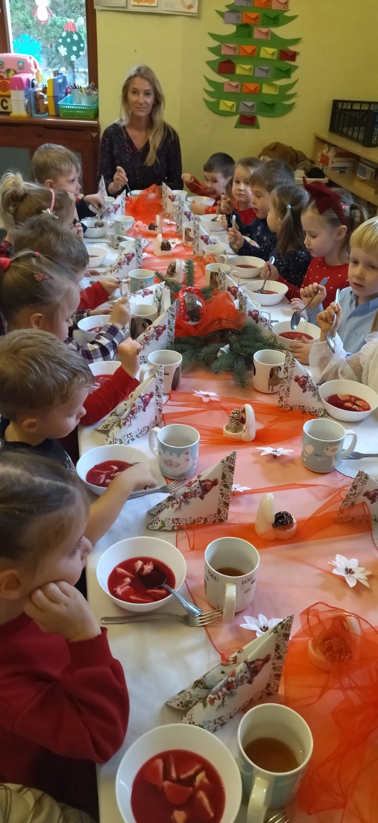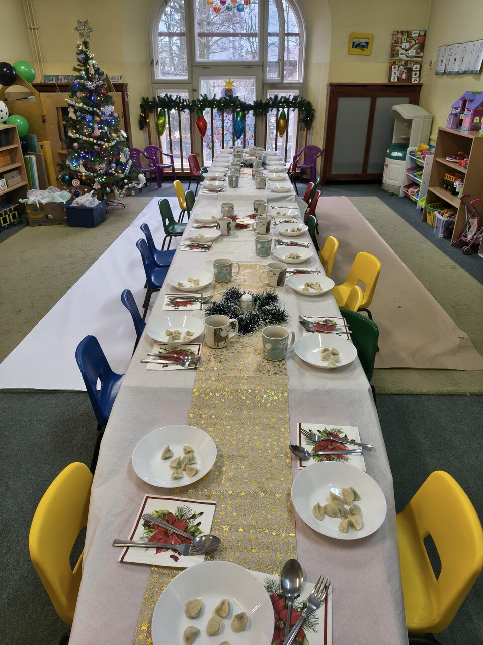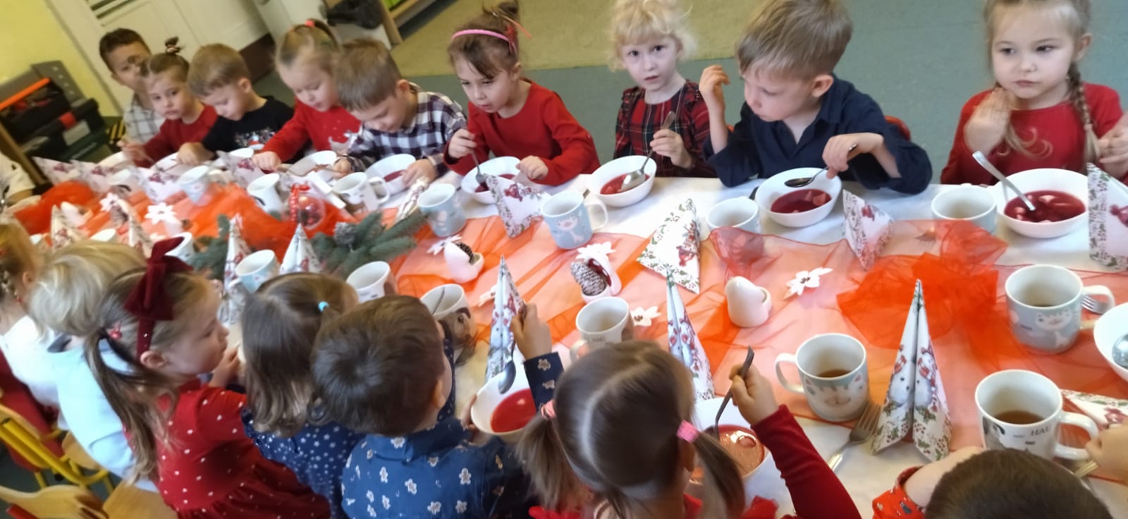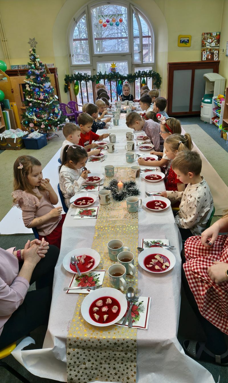 12 grudnia w naszym przedszkolu odbył się uroczysty obiad wigilijny. Była to świetna okazja do wejścia w uroczysty nastrój podczas śpiewania świątecznych piosenek, składania sobie życzeń i próbowania tradycyjnych wigilijnych potraw. Nie wszyscy okazali się fanami kompotu z suszonych owoców czy kapusty z grochem. Podniosła atmosfera udzieliła się wszystkim. To był miło spędzony czas!