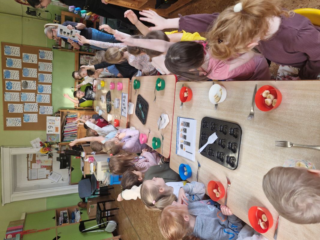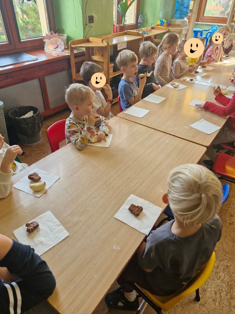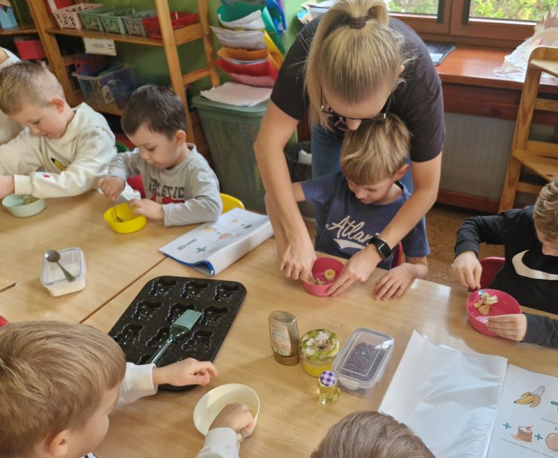 W listopadzie w ramach kulinarnych spotkań z rodzicami, dzieci przygotowały "Misiowe, zdrowe muffinki". Zajęcia poprowadziła mama Tymka i mama Antosi. Panie przygotowały dzieciom ilustrowany przepis na ciasteczka. Ponadto przedszkolaki dowiedziały się o zdrowych zamiennikach różnych produktów. Dzieciom bardzo podobały się zajęcia, tym bardziej iż były połączone ze zbliżającym się "Międzynarodowym Dniem Pluszowego Misia". Na zakończenie zajęć, w oczekiwaniu na wypieki, rodzice przeczytali dzieciom bajkę o tematyce misiowej. Dziękujemy za tak duże zaangażowanie.