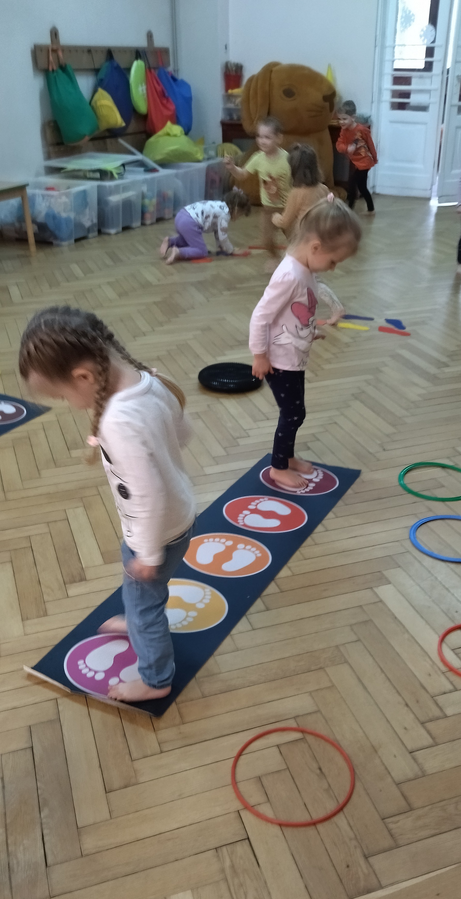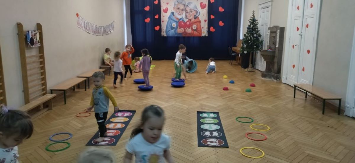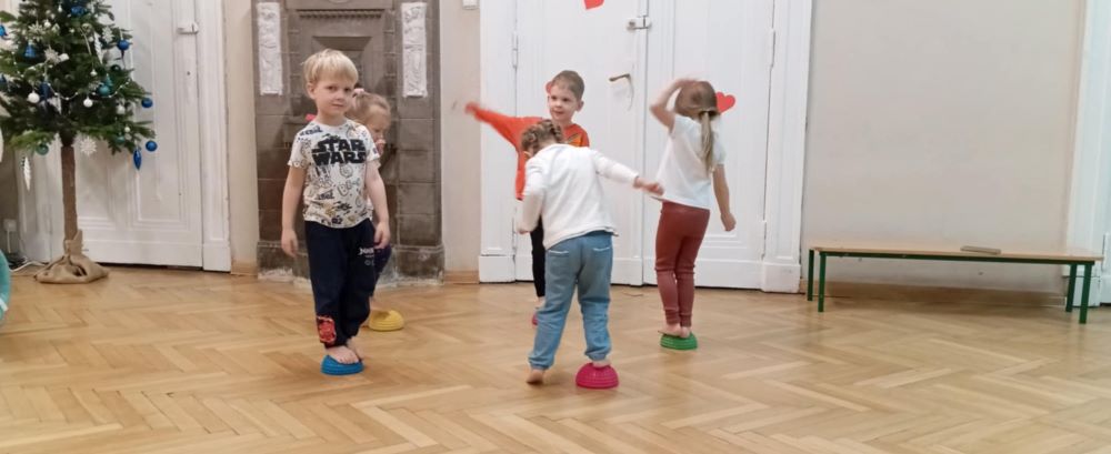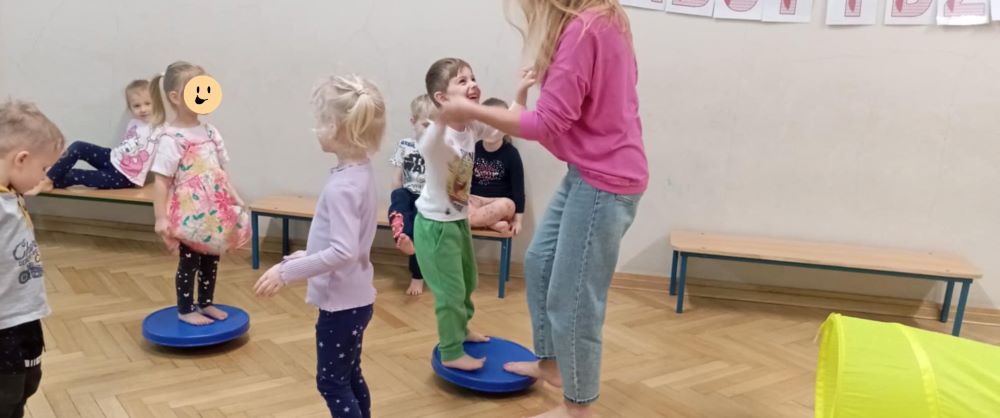 W styczniu w grupie II odbyły się kolejne zabawy sensoryczne w ramach projektu ,, Sensoryczne przygody’’. Tym razem były tory przeszkód, tunele animacyjne, maty i dyski sensoryczne. Zabawy boso stymulują receptory dotyku na stopach, rozwijają równowagę i świadomość własnego ciała. Poza tym dotykanie różnych faktur sprzyja rozwojowi zmysłów dziecka, niesamowicie pobudzając jego wyobraźnię. Zabawy przyniosły dzieciom wiele radości.